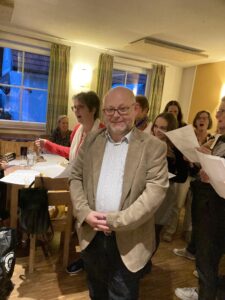 Unter dem Titel einer dislozierten Konferenz lud Herr Direktor Bernhard Moser anlässlich seiner Ernennung zum Direktor und Oberschulrat zu einer Feier zum Heurigen ein. Die Lehrerinnen und Lehrer von drei Schulen kamen zusammen, sowie Bürgermeisterinnen, Bürgermeister und Amtsleiter, als auch die Nachmittagsbetreuerinnen. Die große Schar an Gratulanten sang und feierte gemeinsam.
