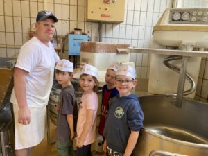 Nach einem schönen Spaziergang nach Getzersdorf besuchte die 1. Klasse die Bäckerei Käppl. Bäckermeister Wolfgang Käppl führte uns durch den Betrieb und die Kinder erfuhren viele spannende und interessante Informationen zum Beruf des Bäckers. Natürlich waren die Informationen mit vielen praktischen Tätigkeiten verbunden. Die Kinder konnten bei der Herstellung eines Briocheteiges mitwirken. Die großen Maschinen waren sehr beeindruckend. Jedes Kind durfte auch sein eigenes Gebäck formen. Nach schwerer Arbeit wurden wir auch noch verköstigt. Herzlichen Dank für diese tolle und lehrreiche Führung durch den Betrieb! Die Kinder waren so fleißig, dass wir am Mittwoch 6 Kartons mit Gebäck überreicht bekamen. Es war köstlich!
